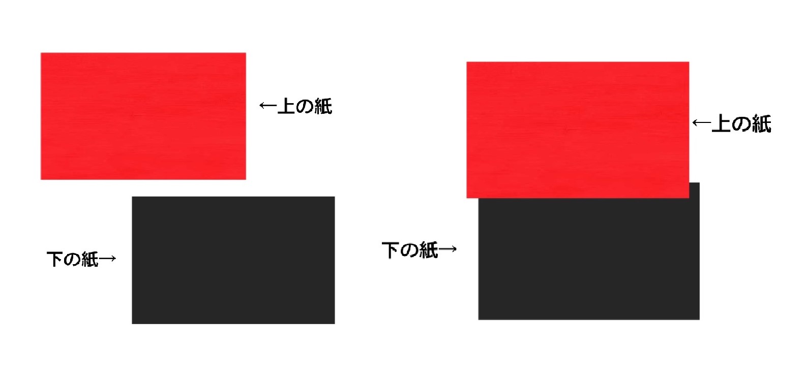 縦に字を書いていくことがほとんどなので、引っかからないように、紙が重なる部分は上の紙が上になるようにしましょう。